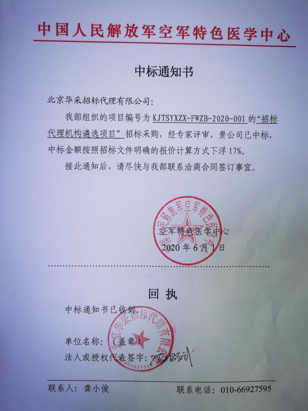北京华采招标代理有限公司成功入围中国人民解放军空军特色医学中心招标代理机构